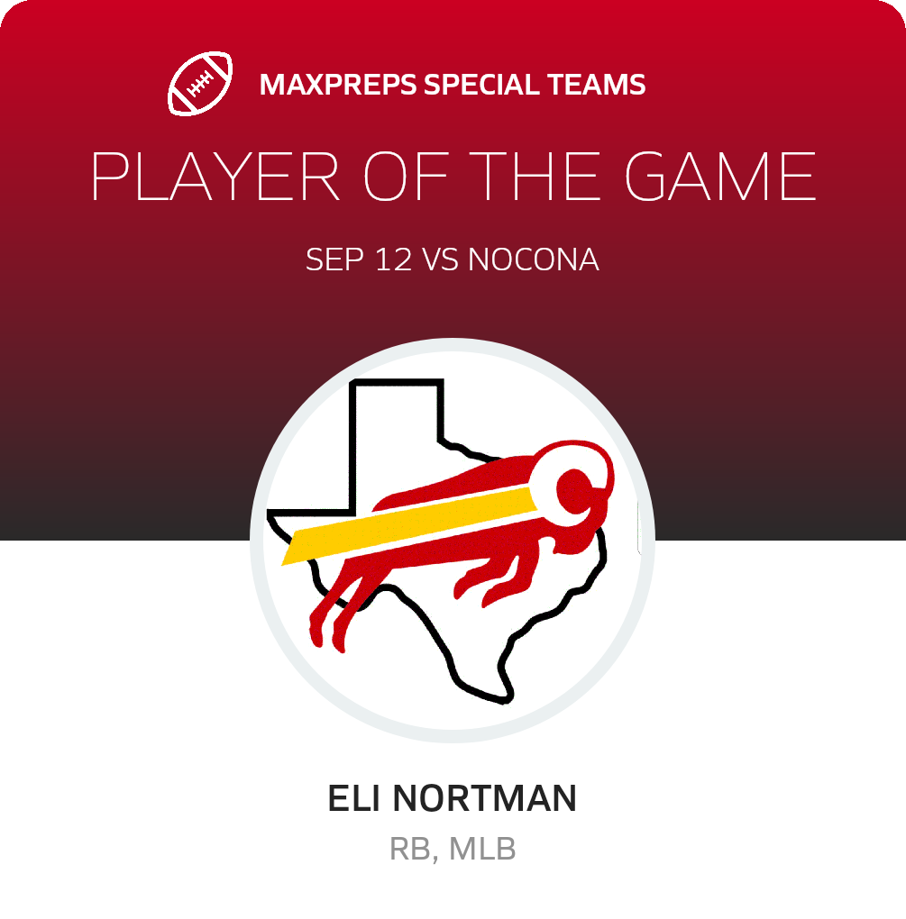 September 12, 2025: Sadler, TX 76264 The S & S Consolidated Rams (Sadler, TX) football knocked off the visiting Nocona Indians (Nocona, TX), 20-12 in Friday's non-league outing.
