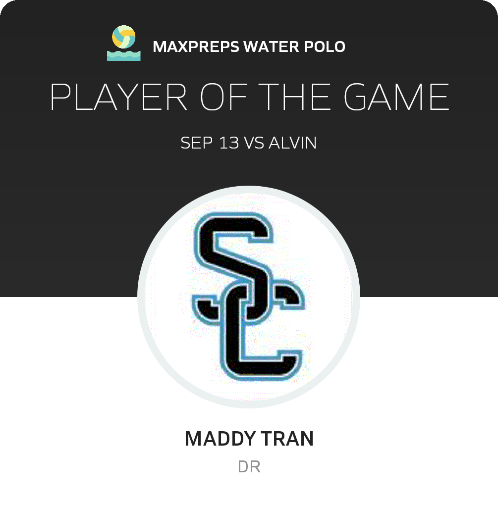 Congratulations to #3 Maddy Tran for being selected the Shadow Creek Girls Water Polo Player of the Game.