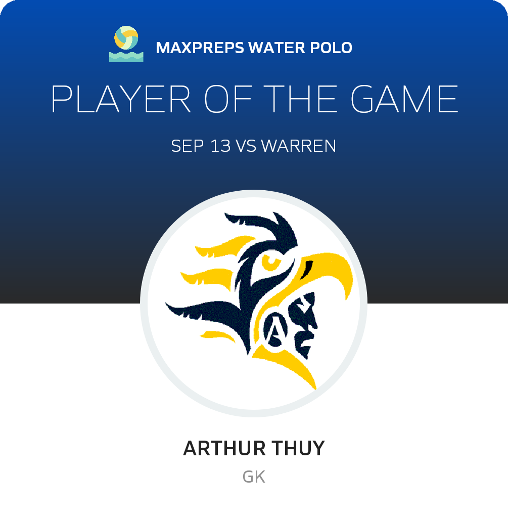 Congratulations to Arthur Thuy for being selected the La Quinta Water Polo Player of the Game.