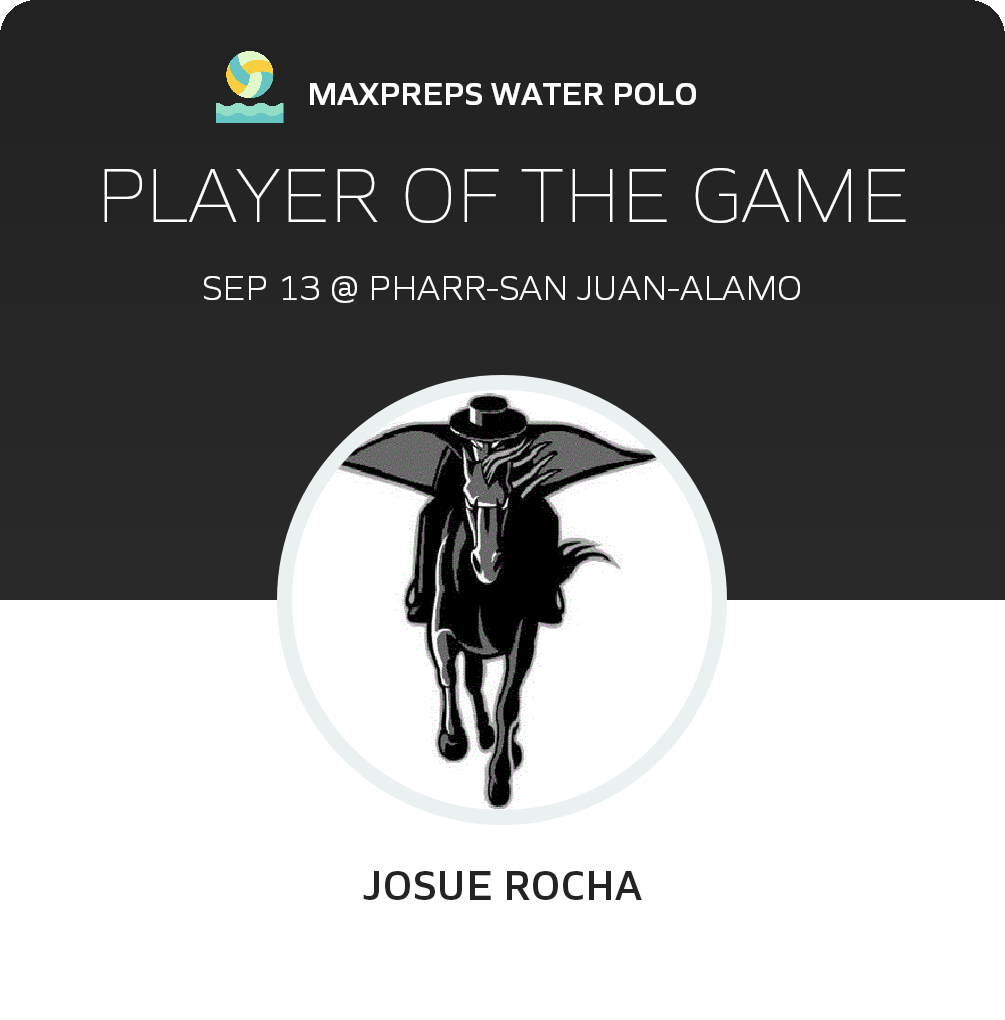 Congratulations to #17 Josue Rocha for being selected the Pharr-San Juan-Alamo North Water Polo Player of the Game.