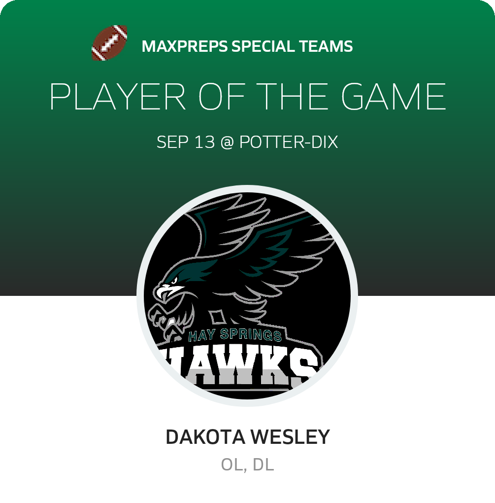 September 13, 2024: Potter, NE 69156 The Hay Springs Hawks walloped the host Potter-Dix Coyotes football team by a score of 88-53 in Friday's non-league challenge.
