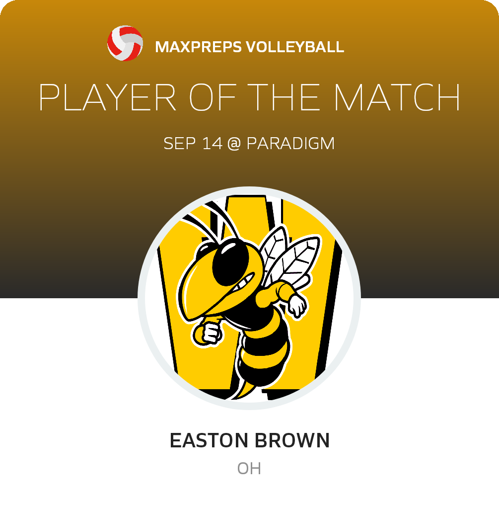 Junior Easton Brown led the team with 9 kills, 2 aces and one block. Juniors Braxton Raven and Winston Smith also contributed 4 kills each. Freshman Jacob Higginson also scored 2 aces, and Seniors Austin Caldwell and Cole Hoffman were the block leaders with 3 and 2 respectively.