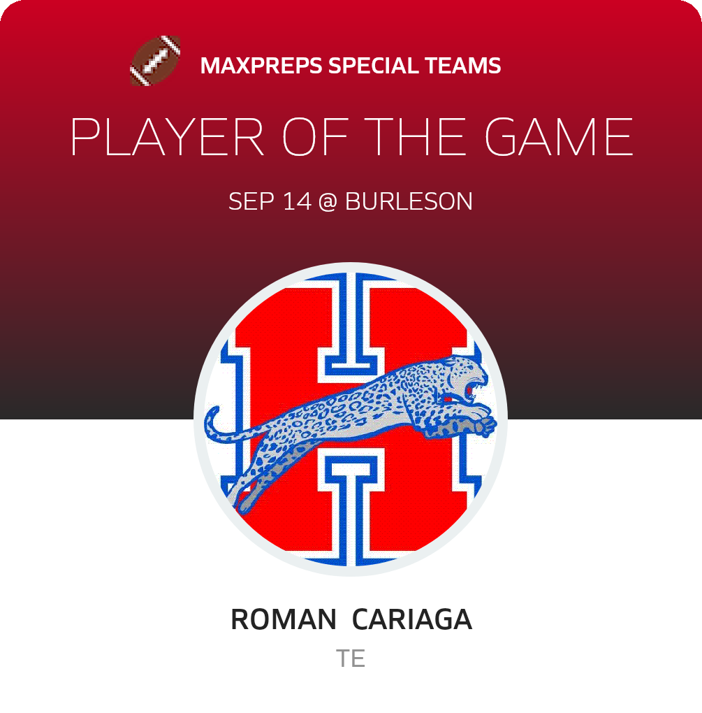 September 14, 2023: Burleson, TX 76028 The Midlothian Heritage Jaguars (Midlothian, TX) football defeated the host Burleson Elks (Burleson, TX), 38-7 in Thursday's league bout.