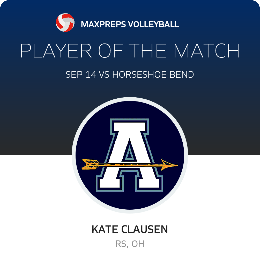 September 14, 2024: Meridian, ID 83646 The The Ambrose School Archers topped the visiting Horseshoe Bend Mustangs volleyball squad by a final score of 2-0 in Saturday's non-league contest.