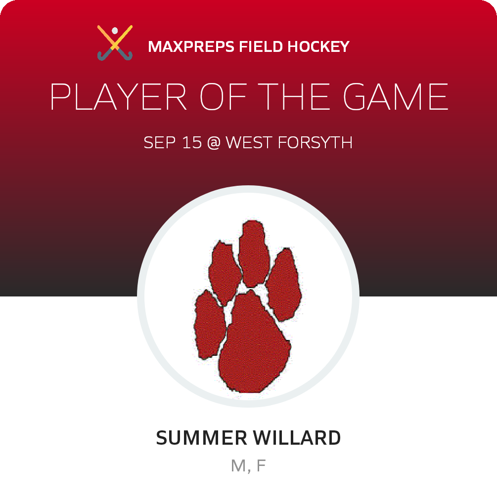 Congratulations to #1 Summer Willard for being selected the Asheville Field Hockey Player of the Game.