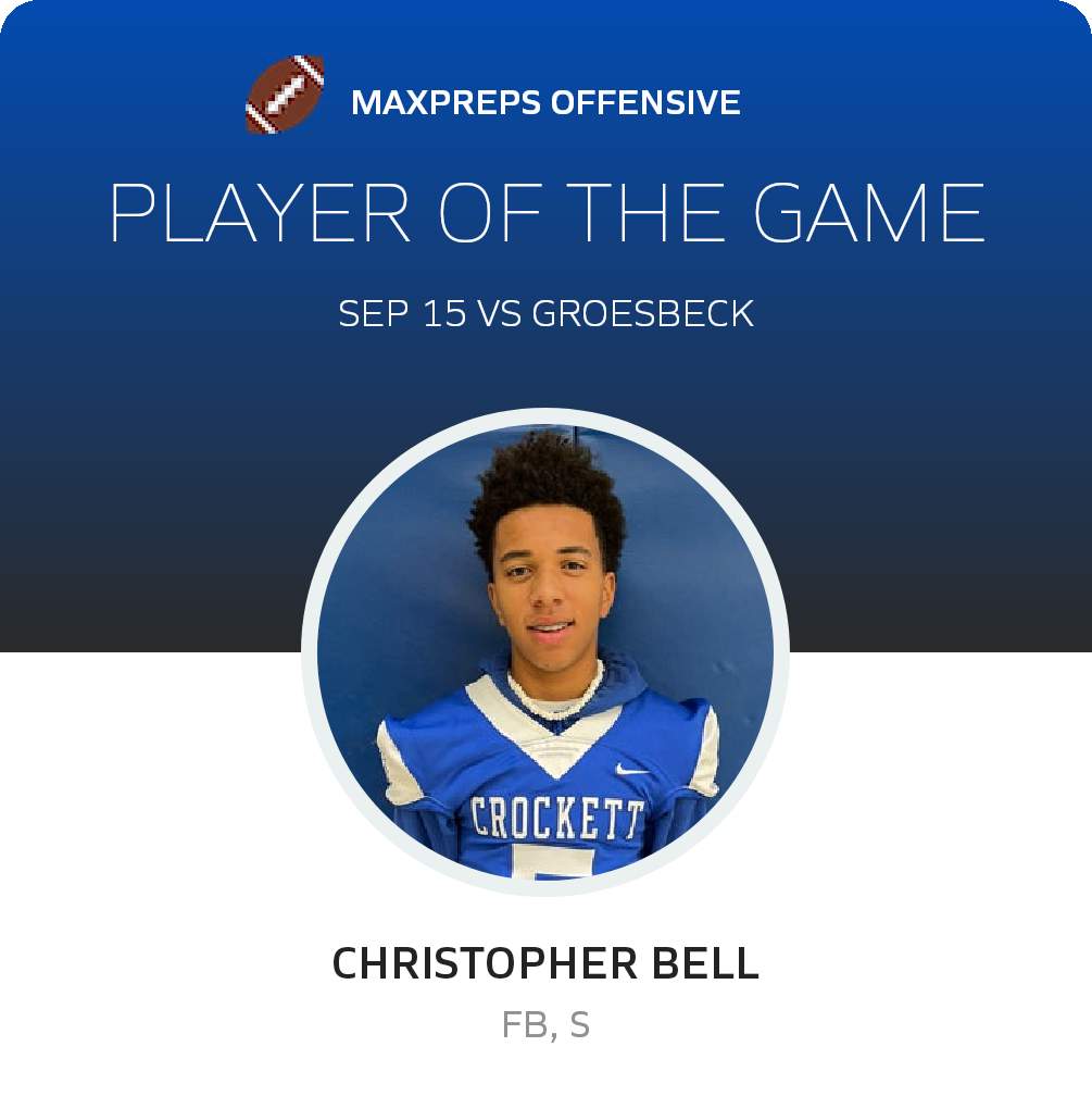 September 15, 2022: Crockett, TX 75835 The Crockett Bulldogs football team (Crockett, TX), went down 21-12 in Thursday's non-league outing with the visiting Groesbeck Goats (Groesbeck, TX)