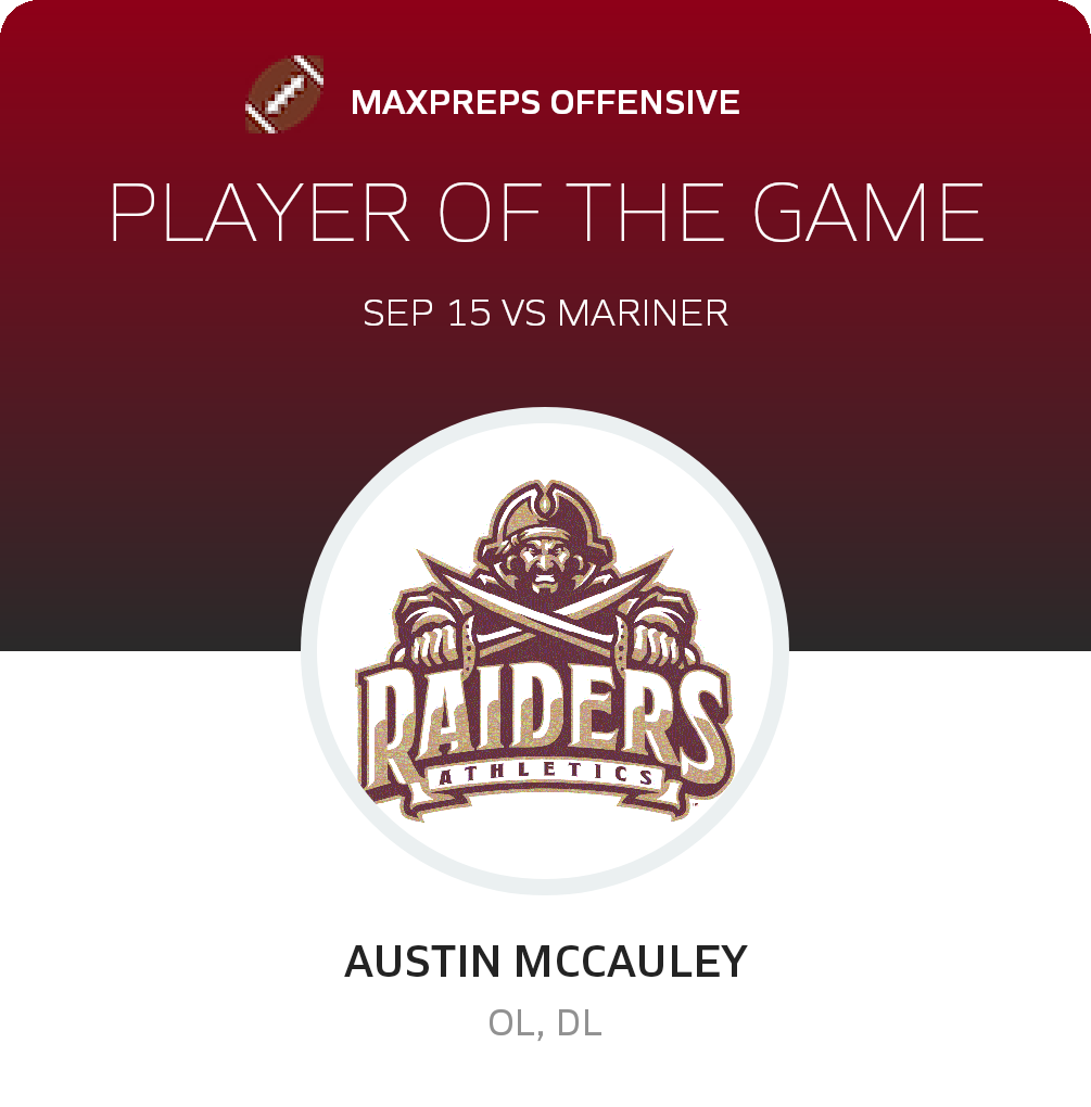 Congratulations to #7 Brody Fizer (overall), #64 Austin McCauley (offensive), #78 Jiovanny Joseph (defensive) and #3 Francisco Rodriquez (special teams) for being selected the Riverdale Freshman Football Players of the Game.
