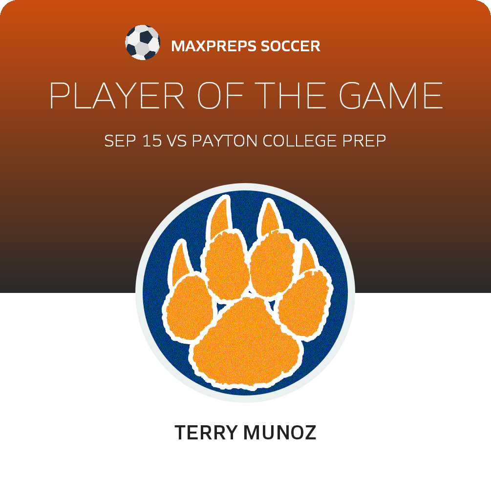 Congratulations to #7 Terry Munoz for being selected the Pritzker Soccer Player of the Match.