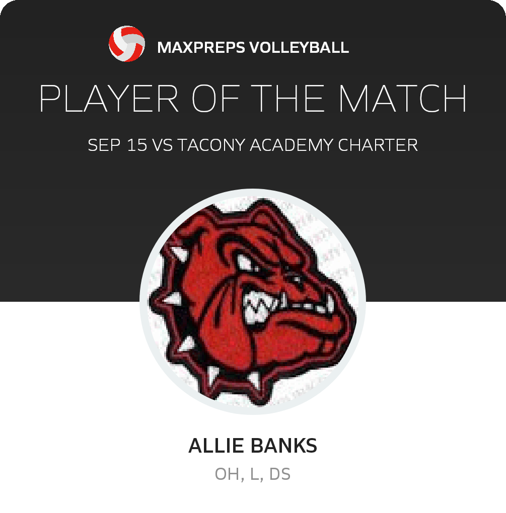 Congratulations to #4 Allie Banks for being selected the Parkway Center City Volleyball Player of the Match.