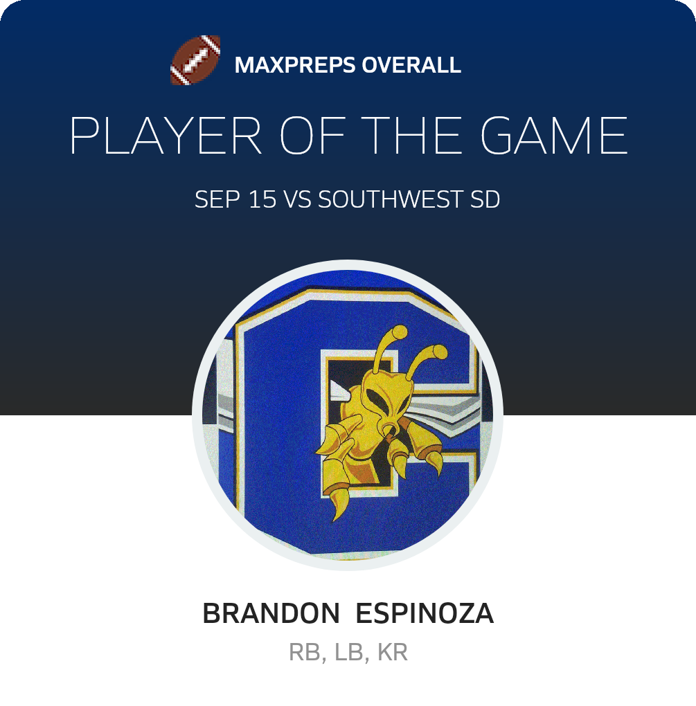The Hornets now sport a 3-2 record. They take the field next when they travel to Clairemont for a non-league game on Friday, September 22. Calipatria will battle a Chieftains team coming off a 35-7 non-league loss to El Cajon Valley (El Cajon, CA). The Chieftains record now stands at 2-3.