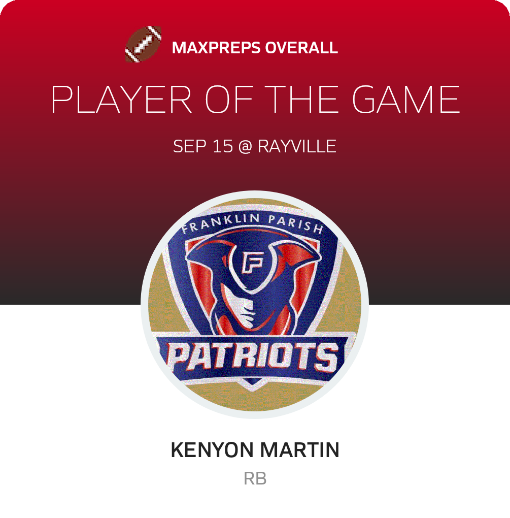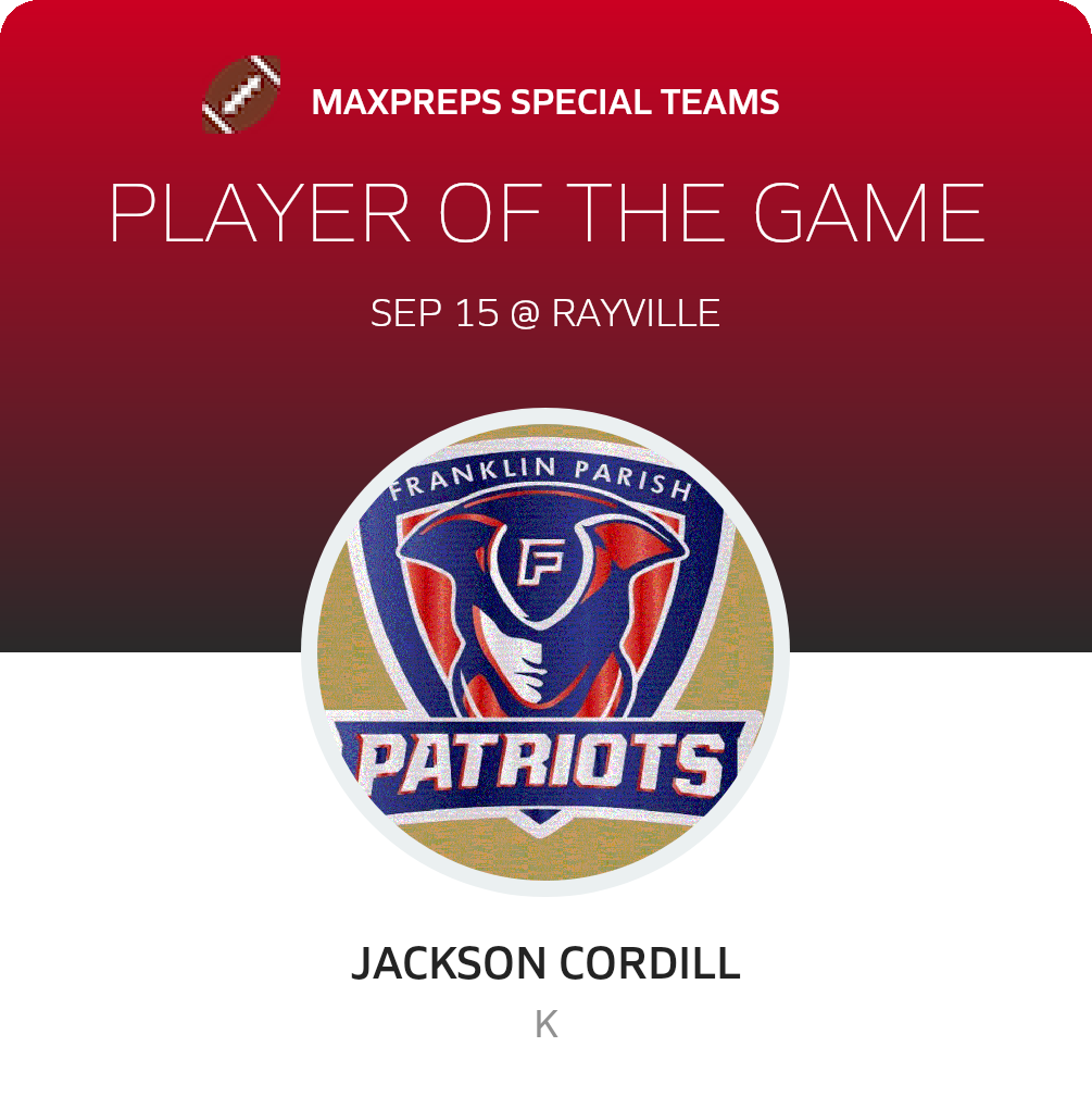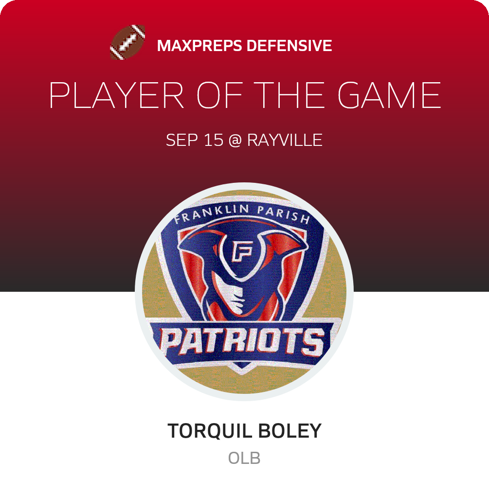 The Patriots now own a 3-0 record. They play next when they host Caldwell Parish for a non-league contest on Friday, September 22. Franklin Parish will play a Spartans squad coming off a 40-28 non-league win over Mangham (Mangham, LA). The Spartans record now stands at 2-1.