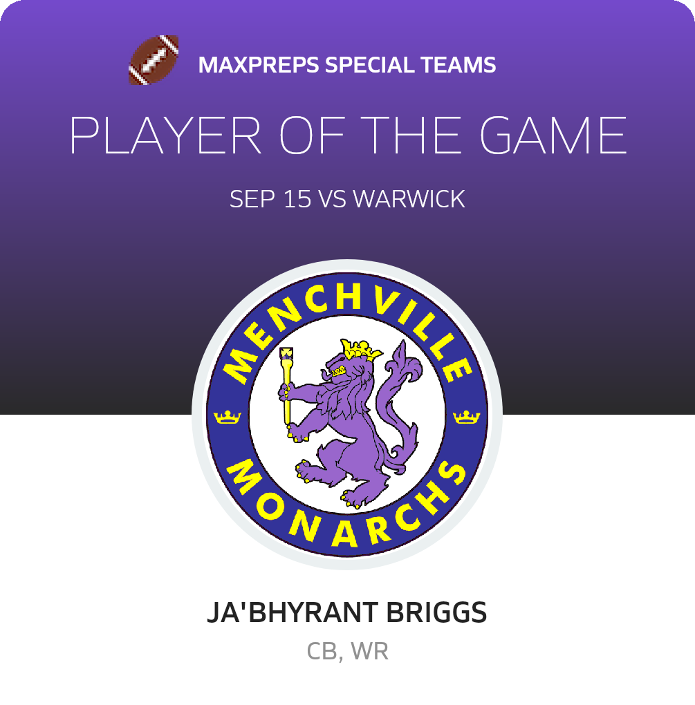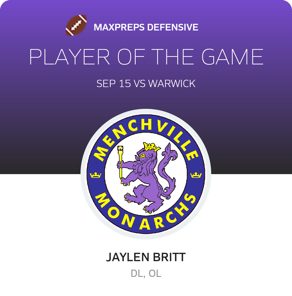 September 15, 2023: Newport News, VA 23602 The Warwick Raiders (Newport News, VA) football routed the host Menchville Monarchs (Newport News, VA), 35-0 in Friday's league bout.
