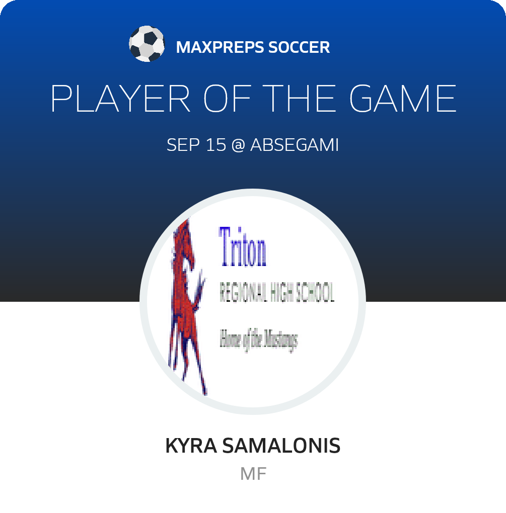 Congratulations to #10 Kyra Samalonis for being selected the Triton Girls Soccer Player of the Match.