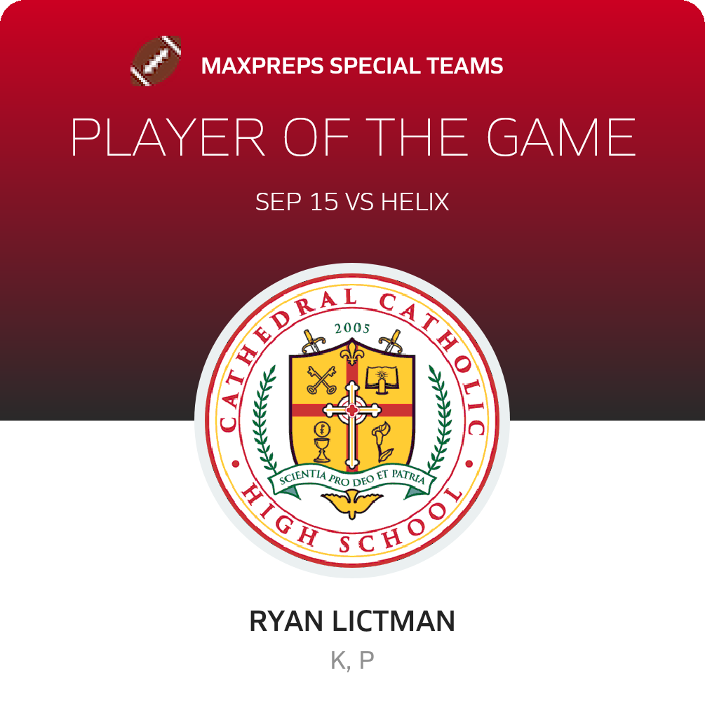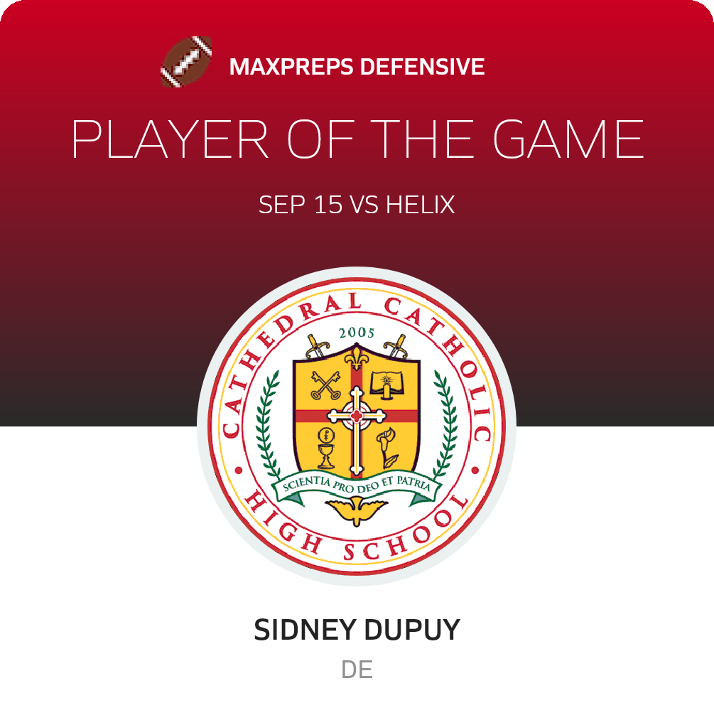 Congratulations to #2 Logan Jones (overall), #20 Christian Williams (offensive), #77 Sidney Dupuy (defensive) and #24 Ryan Lichtman (special teams) for being selected the Cathedral Catholic JV Football Players of the Game.