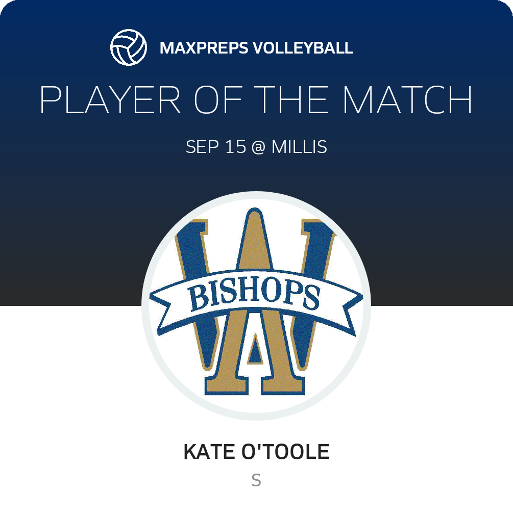 September 15, 2025: Millis, MA 02054 The Archbishop Williams Bishops prevailed the host Millis Mohawks volleyball squad by a final score of 3-0 in Monday's non-league bout.