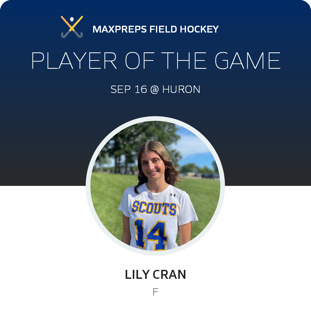 Congratulations to #14 Lily Cran for being selected the Lake Forest Field Hockey Player of the Game.