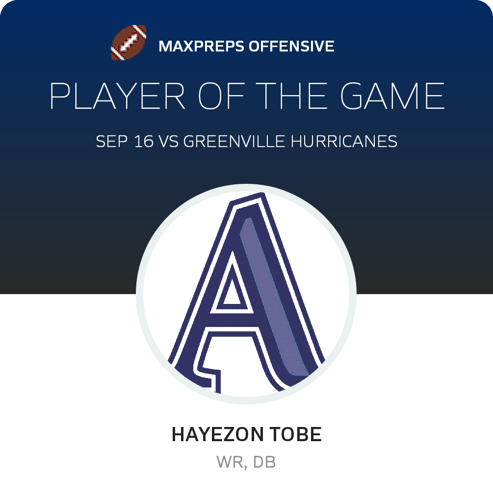 Congratulations to #7 Ricky Tolbert (overall) and #2 Hayezon Tobe (offensive and defensive) for being selected the Asheville School (Independent) Football Players of the Game.