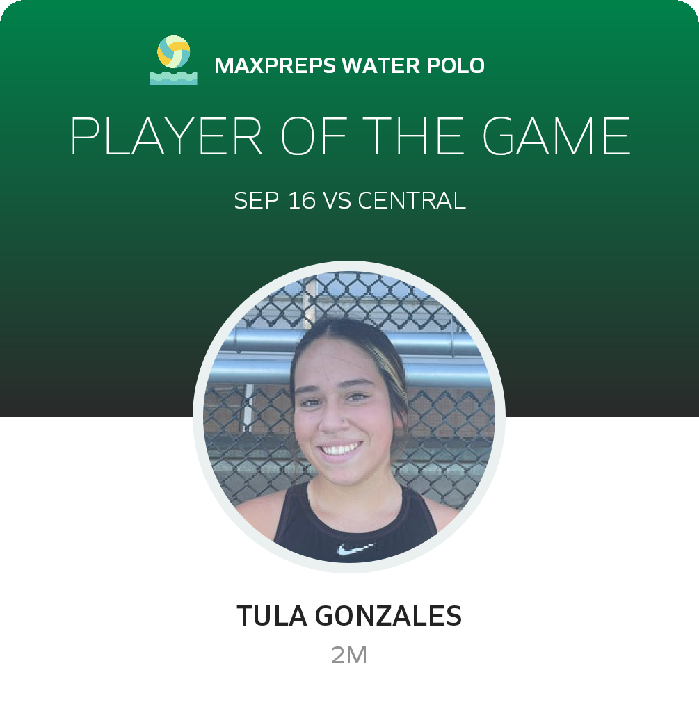 Congratulations to #17 Tula Gonzales for being selected the Roosevelt Girls Water Polo Player of the Game.
