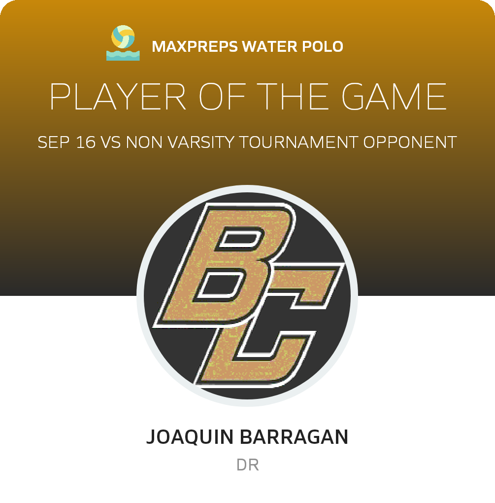 Congratulations to #5 Joaquin Barragan for being selected the Buhach Colony Water Polo Player of the Game.