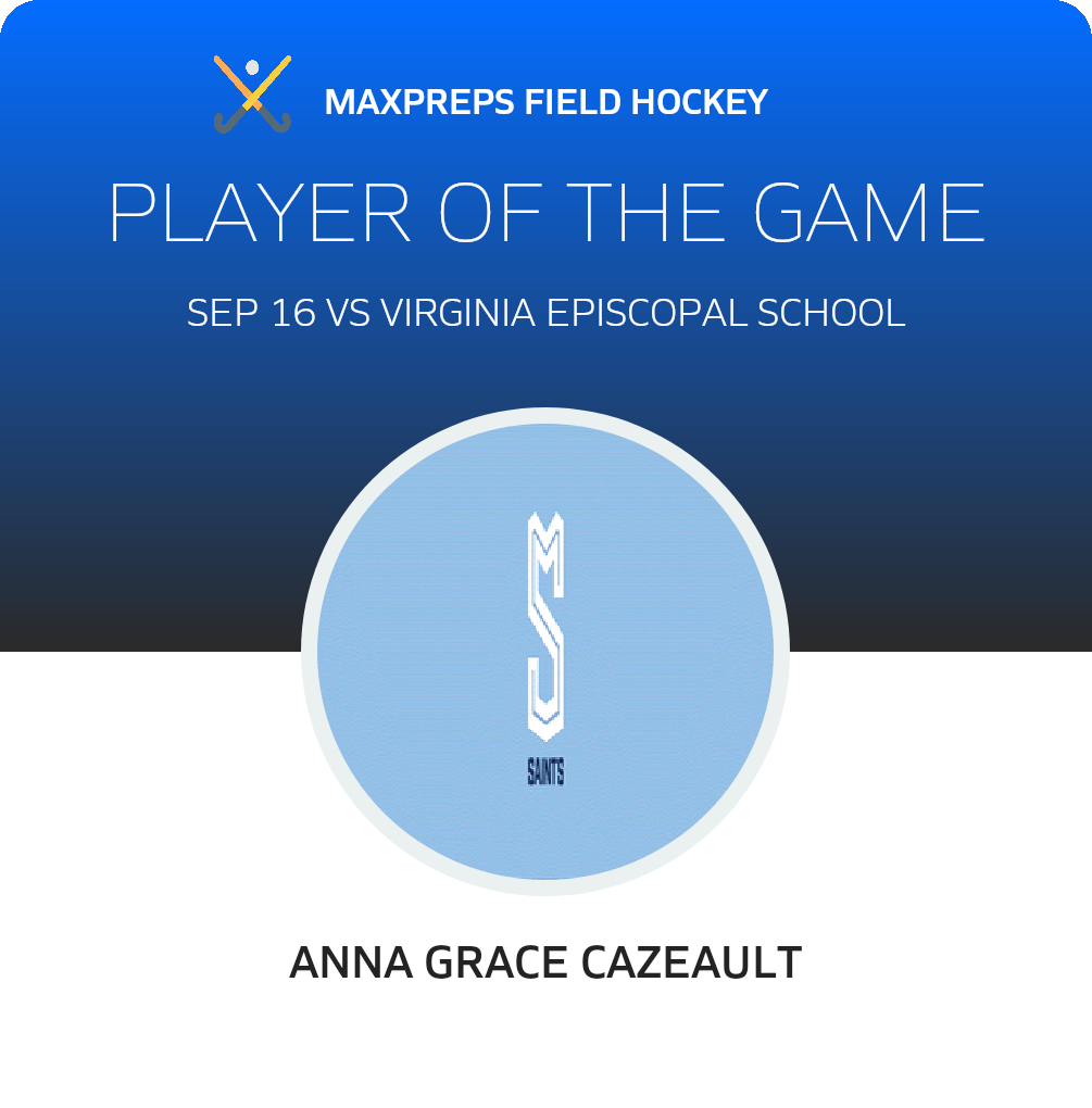Congratulations to #3 Anna Grace Cazeault for being selected the St. Mary's Field Hockey Player of the Game.