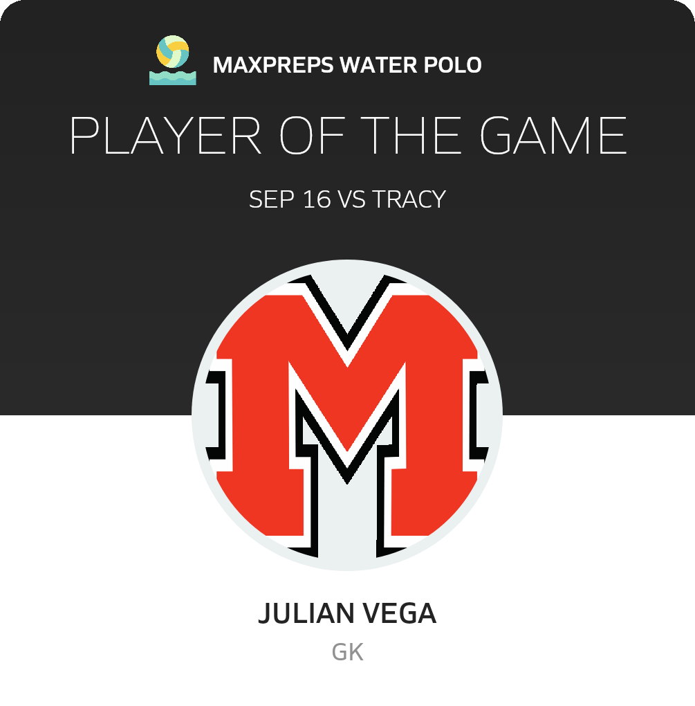 Congratulations to #1 Julian Vega for being selected the Merced JV Water Polo Player of the Game.