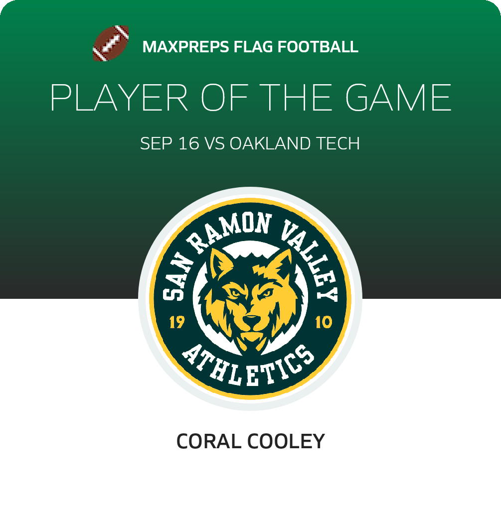 September 16, 2024: Danville, CA 94526 In Monday's non-league match, the host San Ramon Valley Wolves flag football squad scored a good 32-12 triumph over the Oakland Tech Bulldogs.