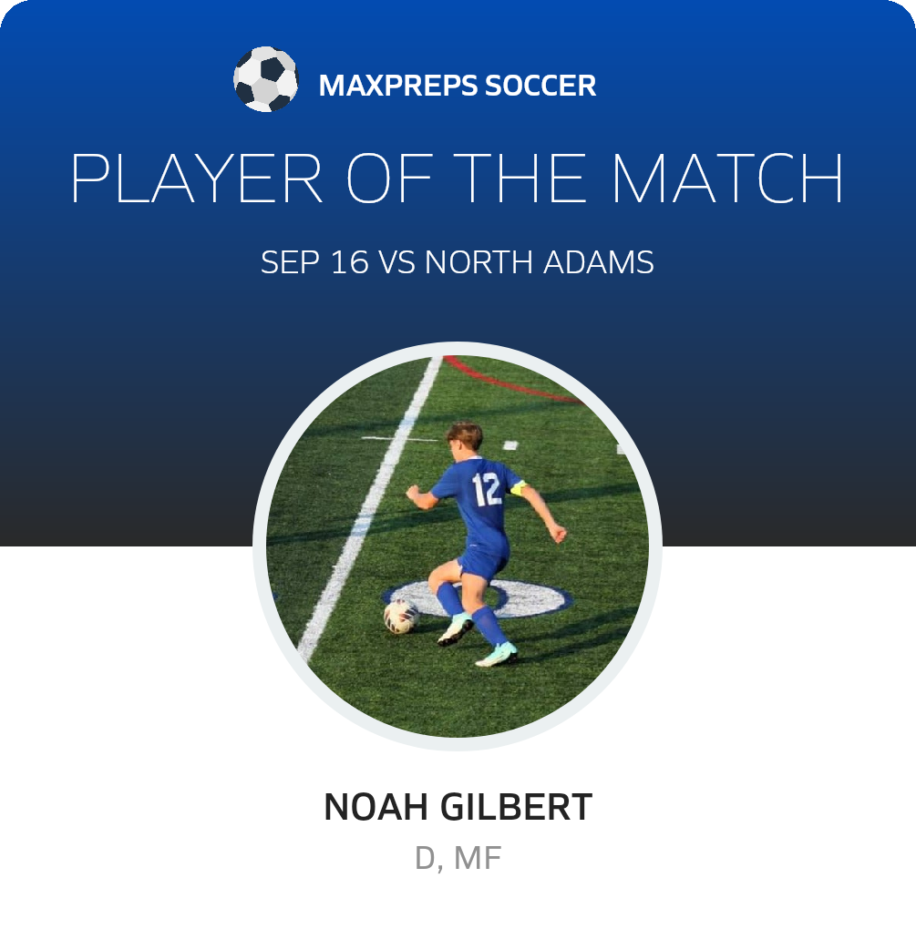 Congratulations to #12 Noah Gilbert for being selected the Williamsburg Soccer Player of the Match.