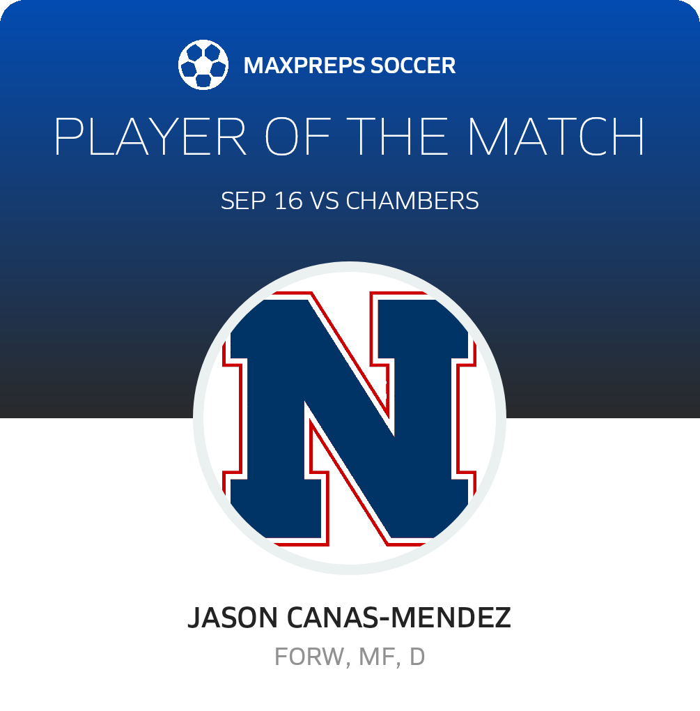 Congratulations to #17 Jason Canas-Mendez for being selected the North Mecklenburg Soccer Player of the Match.