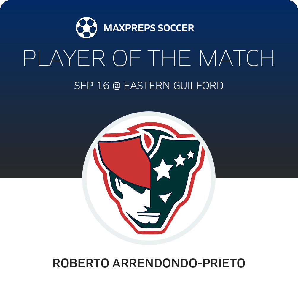 Congratulations to #5 Roberto Arrendondo-Prieto for being selected the Providence Grove Soccer Player of the Match.