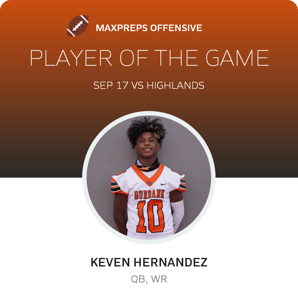 September 17, 2022: San Antonio, TX 78204 The Highlands Owls (San Antonio, TX) football defeated the host Burbank Bulldogs (San Antonio, TX), 40-21 in Saturday's league bout.