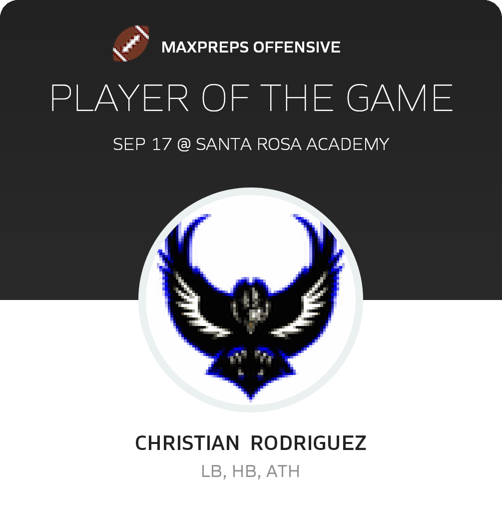 September 17, 2022: Menifee, CA 92584 The Santa Rosa Academy Rangers football squad scored 40 points and limited the visiting California City Ravens to 6 in the Rangers non-league win on Saturday.