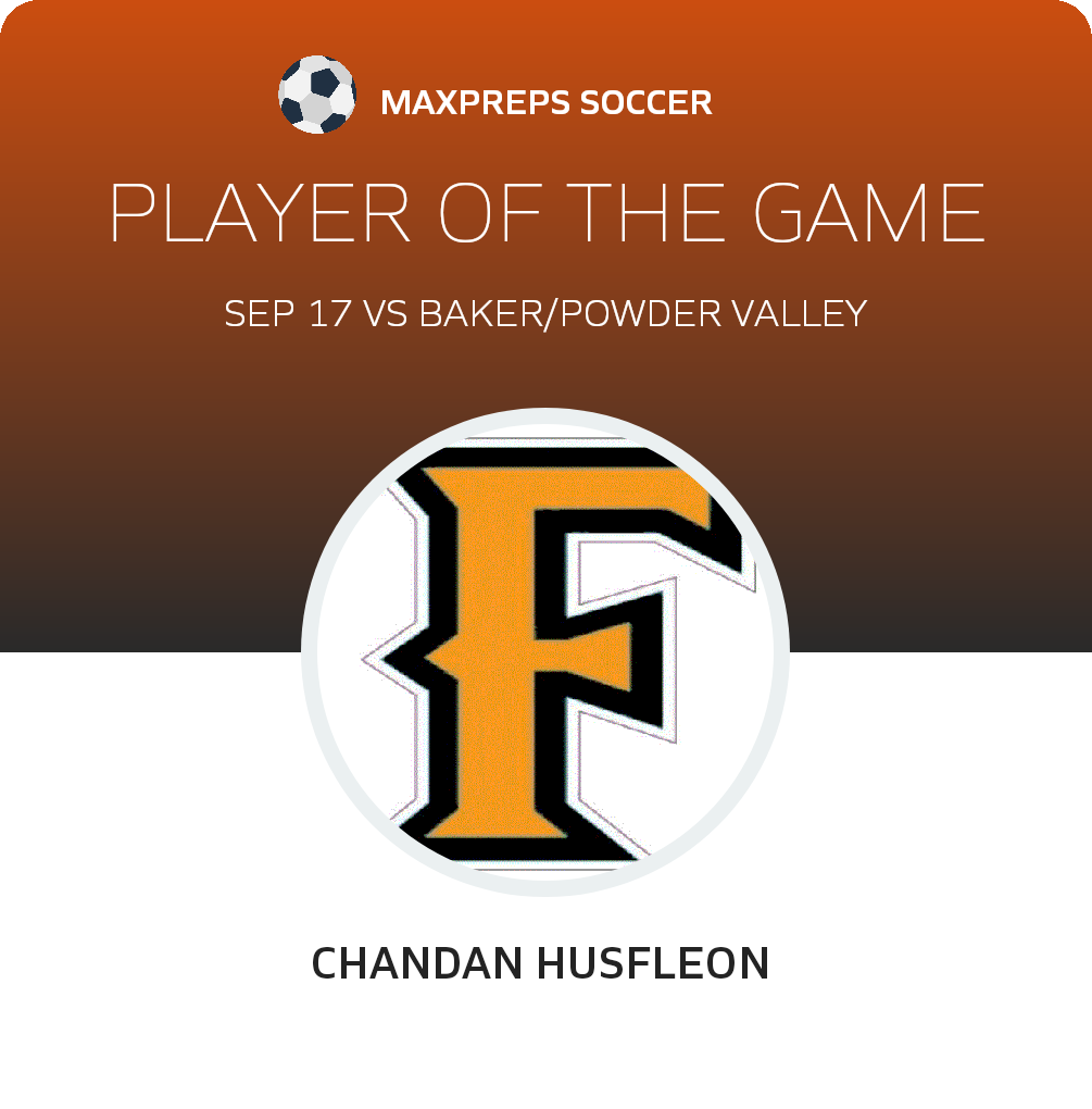 Congratulations to #16 Chandan Husfleon for being selected the Fruitland Soccer Player of the Match.