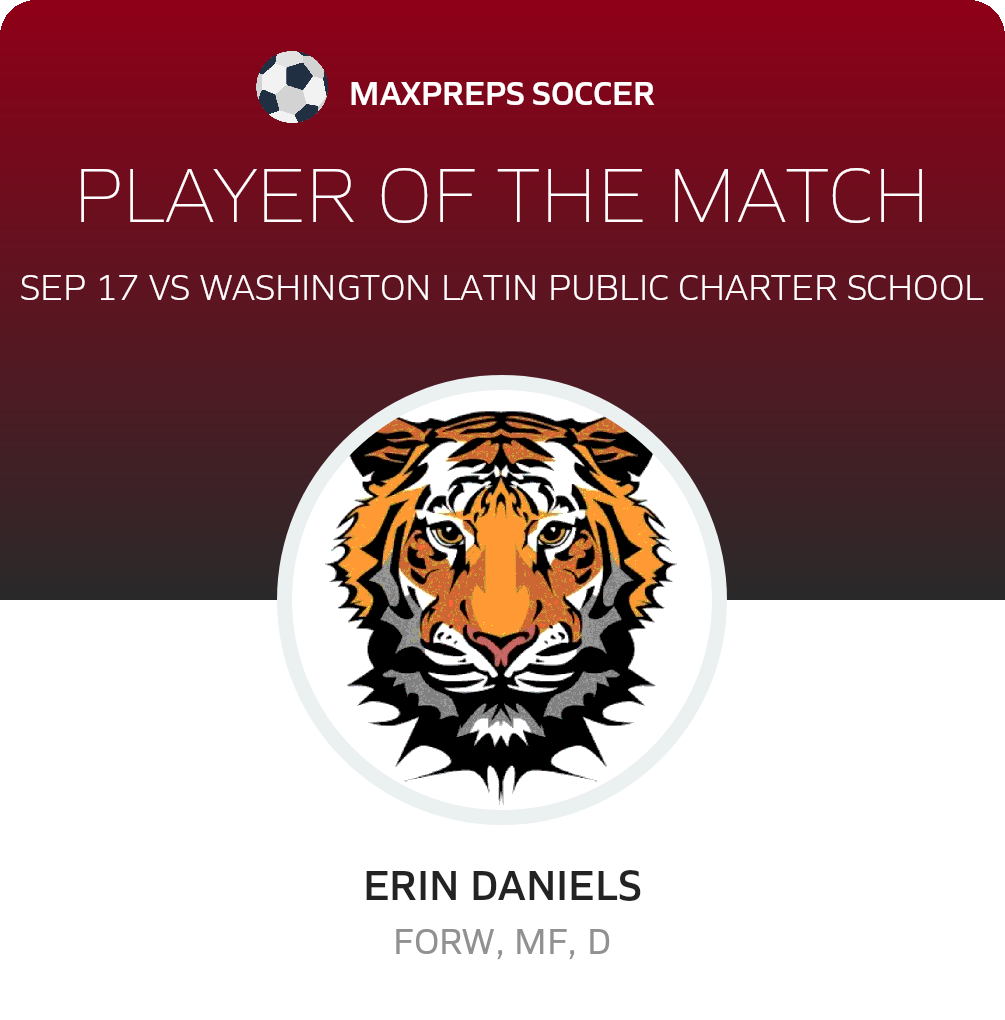 Congratulations to #5 Erin Daniels for being selected the Takoma Academy Girls Soccer Player of the Match.