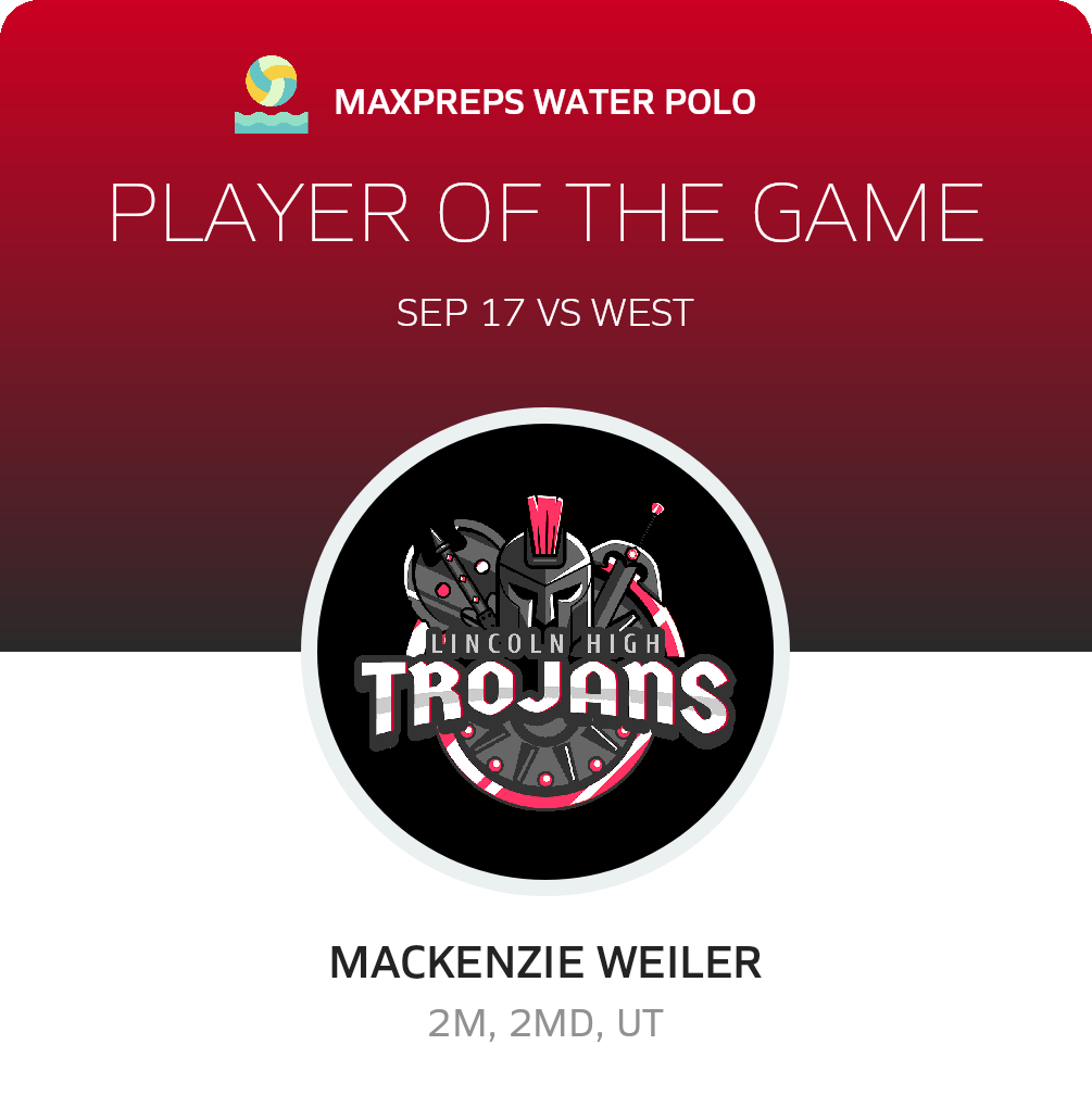 Congratulations to #13 Mackenzie Weiler for being selected the Lincoln Girls Water Polo Player of the Game.