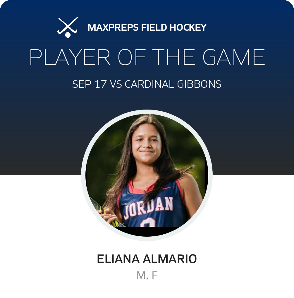 Congratulations to #8 Eliana Almario for being selected the Jordan Field Hockey Player of the Game.