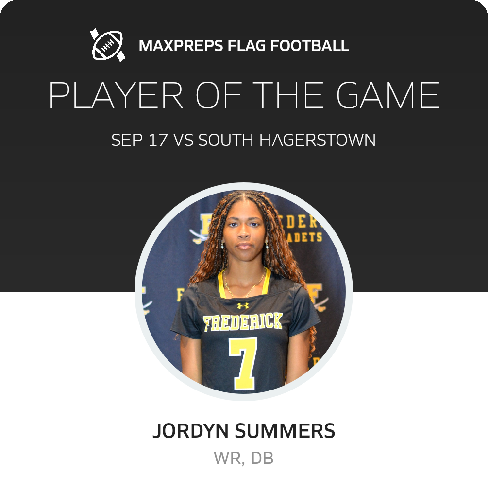 September 17, 2025: Frederick, MD 21701 In Wednesday's non-league game, the Frederick Cadets (Frederick, MD) flag football team triumphed over the visiting South Hagerstown Rebels (Hagerstown, MD), by a tally of 41-6.