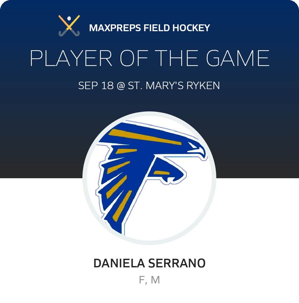 Congratulations to #13 Daniela Serrano for being selected the Our Lady of Good Counsel Field Hockey Player of the Game.