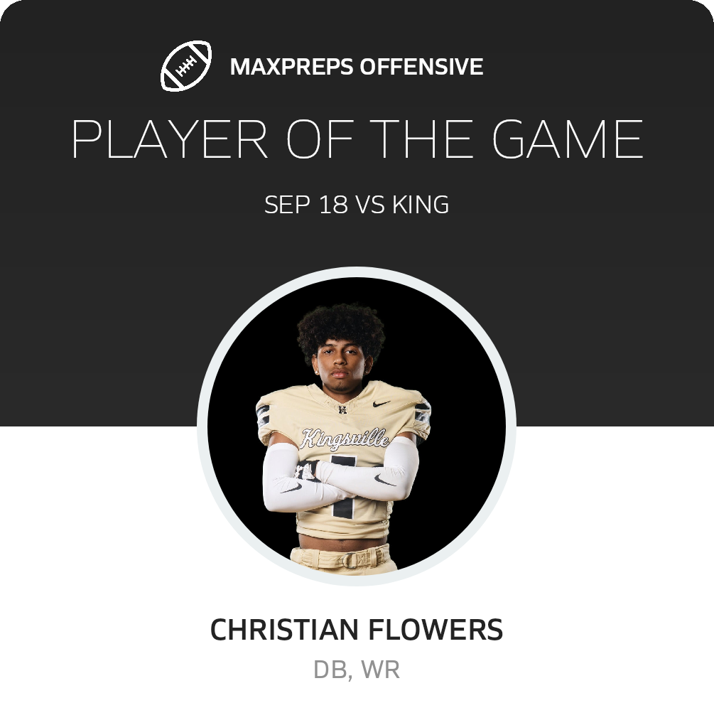 September 18, 2025: Kingsville, TX 78364 The King Mustangs football squad (Corpus Christi, TX), was toppled 48-27 in Thursday's non-league contest with the host King Brahmas (Kingsville, TX)