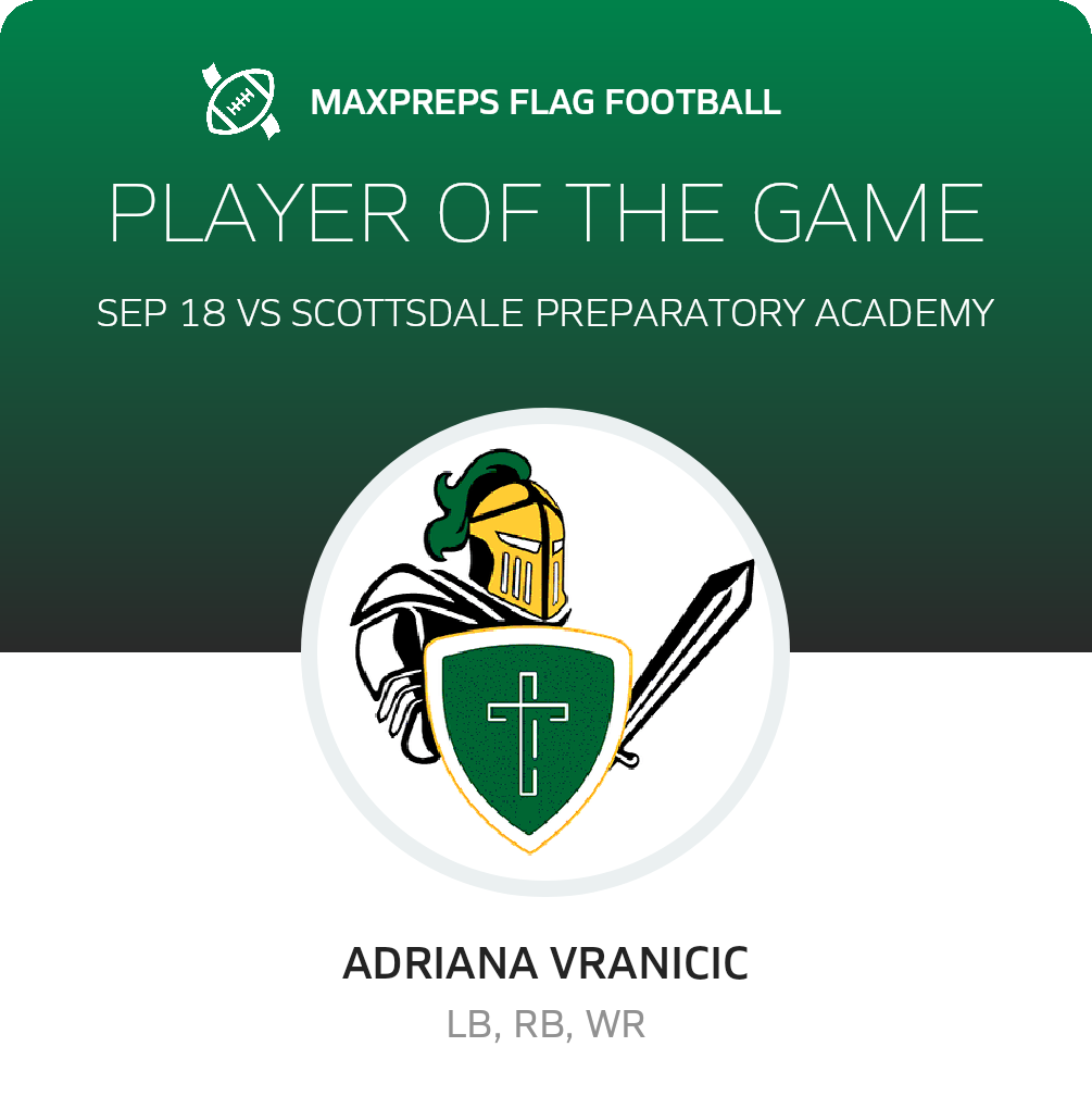 September 18, 2025: Gilbert, AZ 85296 The Gilbert Christian Knights (Gilbert, AZ) flag football tipped the visiting Scottsdale Preparatory Academy Spartans (Scottsdale, AZ), 3-0 in Thursday's non-league outing.