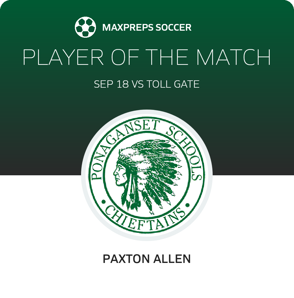 September 18, 2025: North Scituate, RI 02857 The Toll Gate Titans held off the host Ponaganset Chieftains soccer team by a tally of 2-1 in Thursday's league game.