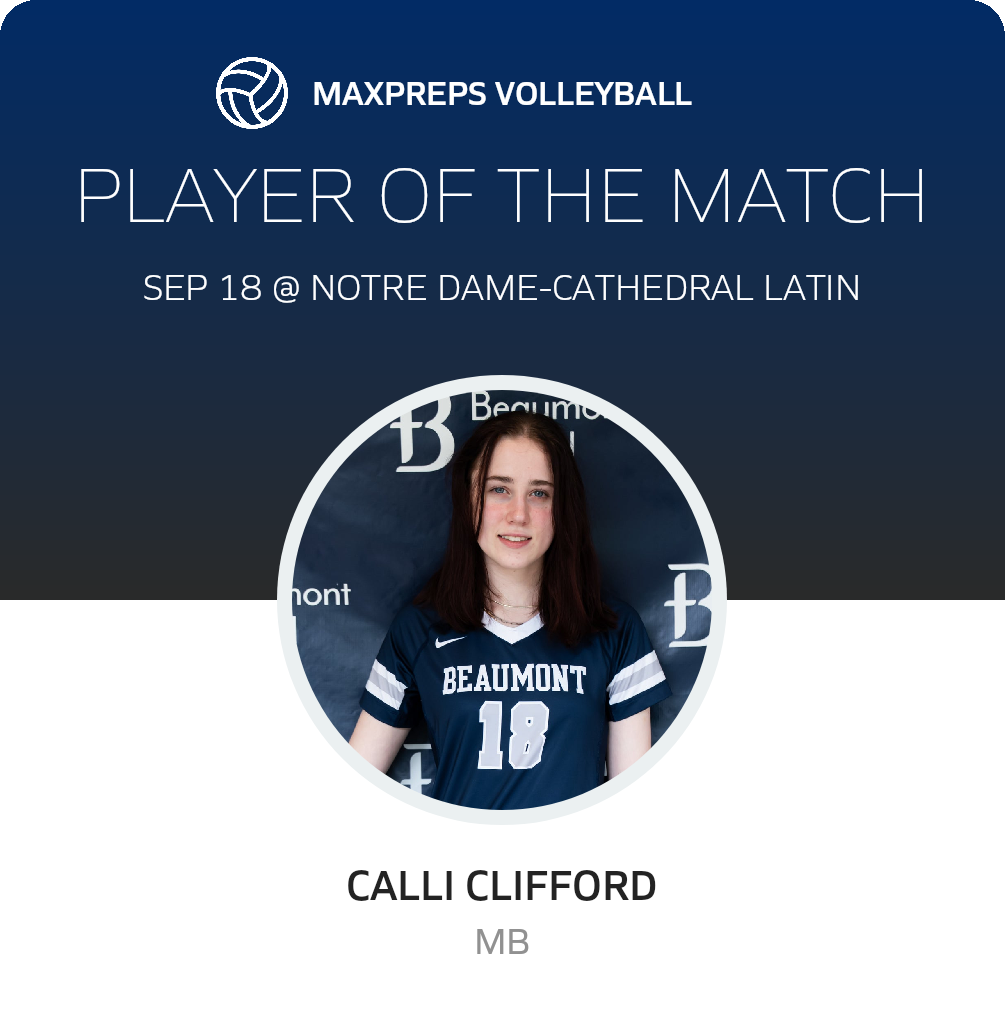 September 18, 2025: Chardon, OH 44024 In Thursday's league challenge, the host Notre Dame-Cathedral Latin Lions volleyball team scored a 3-0 victory over the Beaumont School Blue Streaks.
