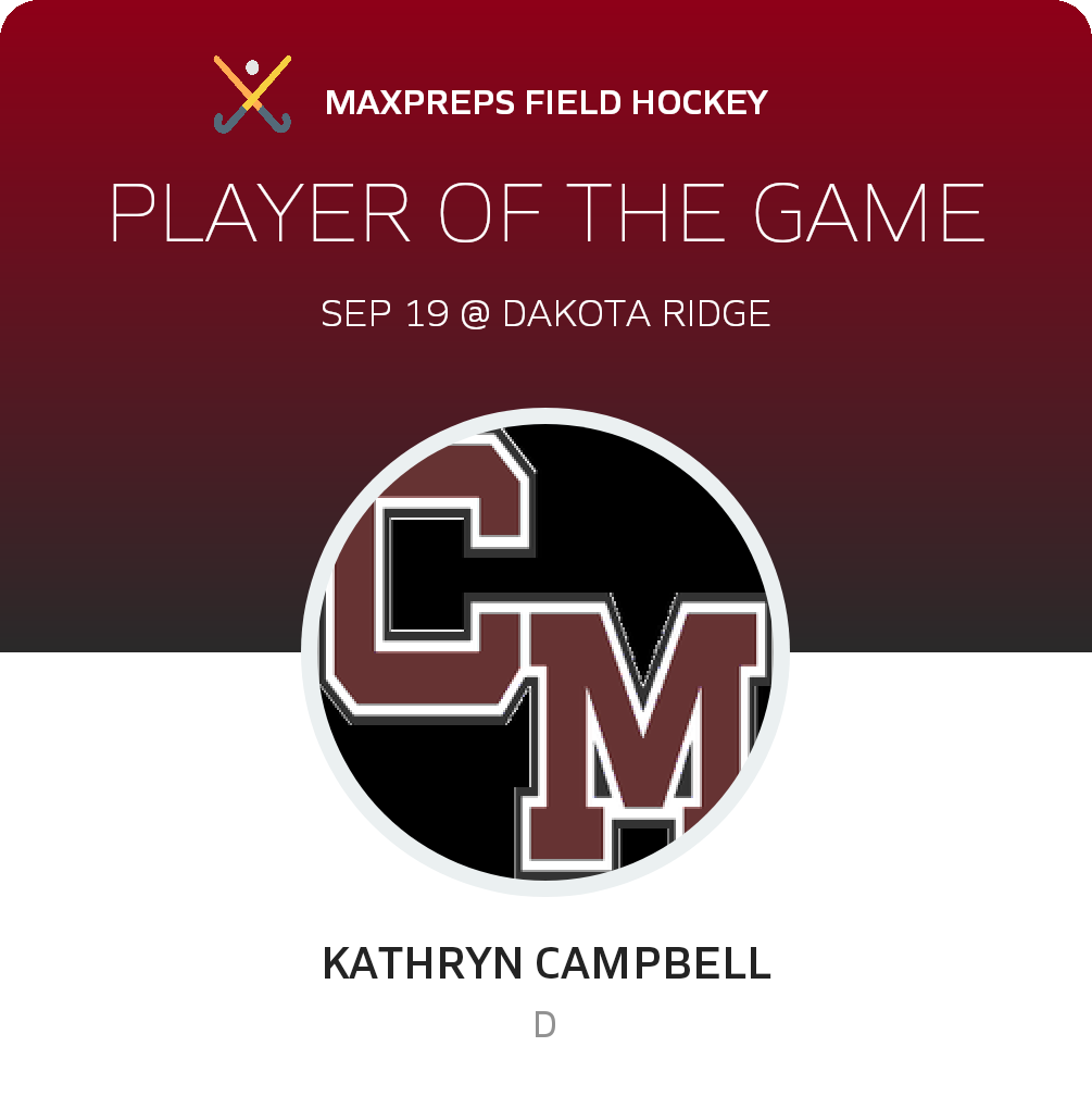 Congratulations to #2 Kathryn Campbell for being selected the Cheyenne Mountain Field Hockey Player of the Game.