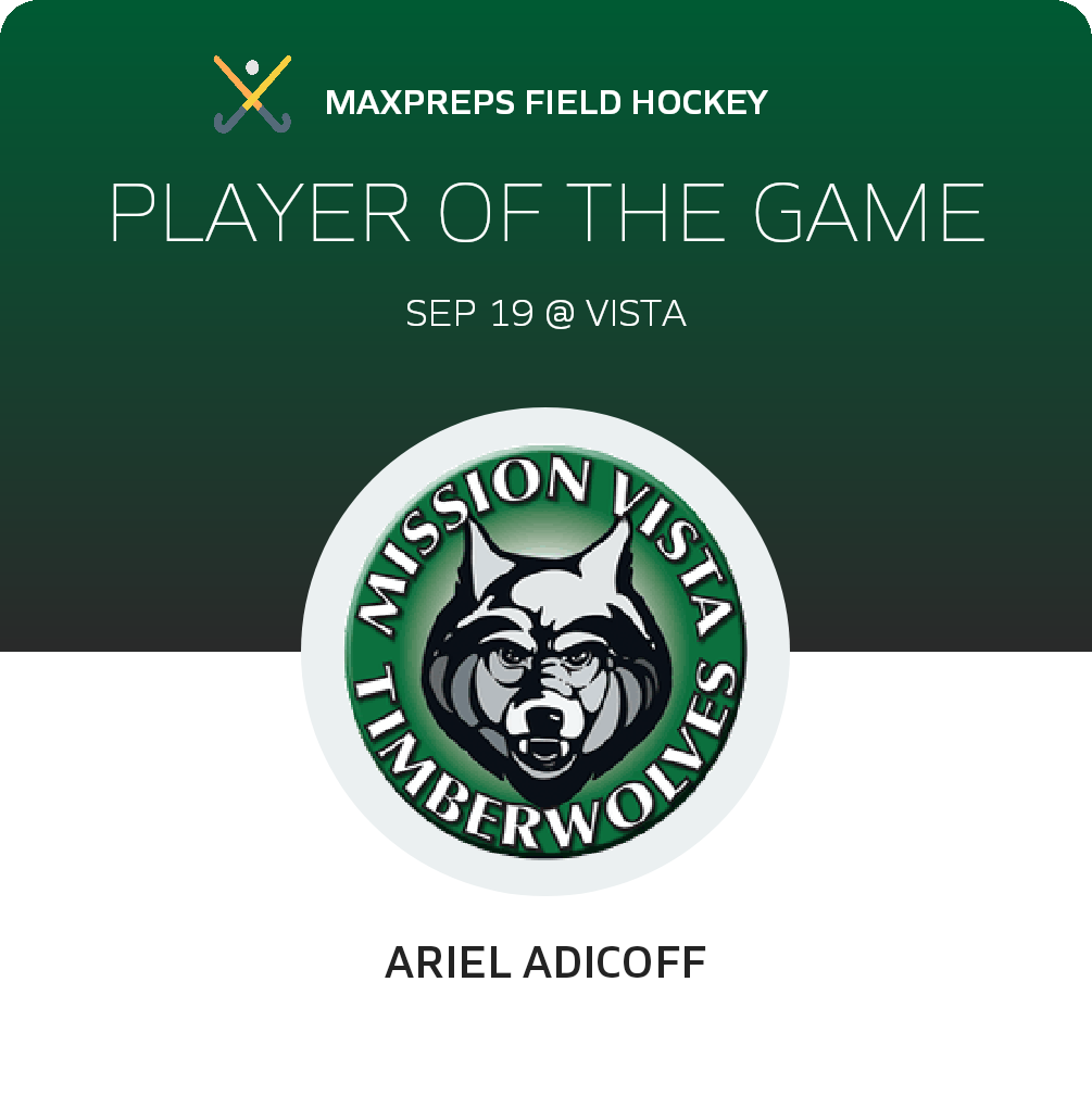 Congratulations to Ariel Adicoff for being selected the Mission Vista Field Hockey Player of the Game.