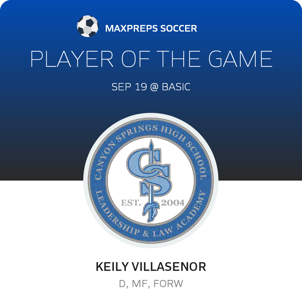 Congratulations to #5 Keily Villasenor for being selected the Canyon Springs Girls Soccer Player of the Match.