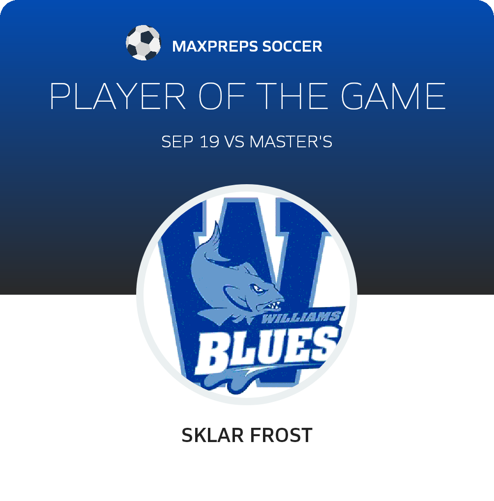 Congratulations to #7 Skylar Frost for being selected the The Williams School Girls Soccer Player of the Match.