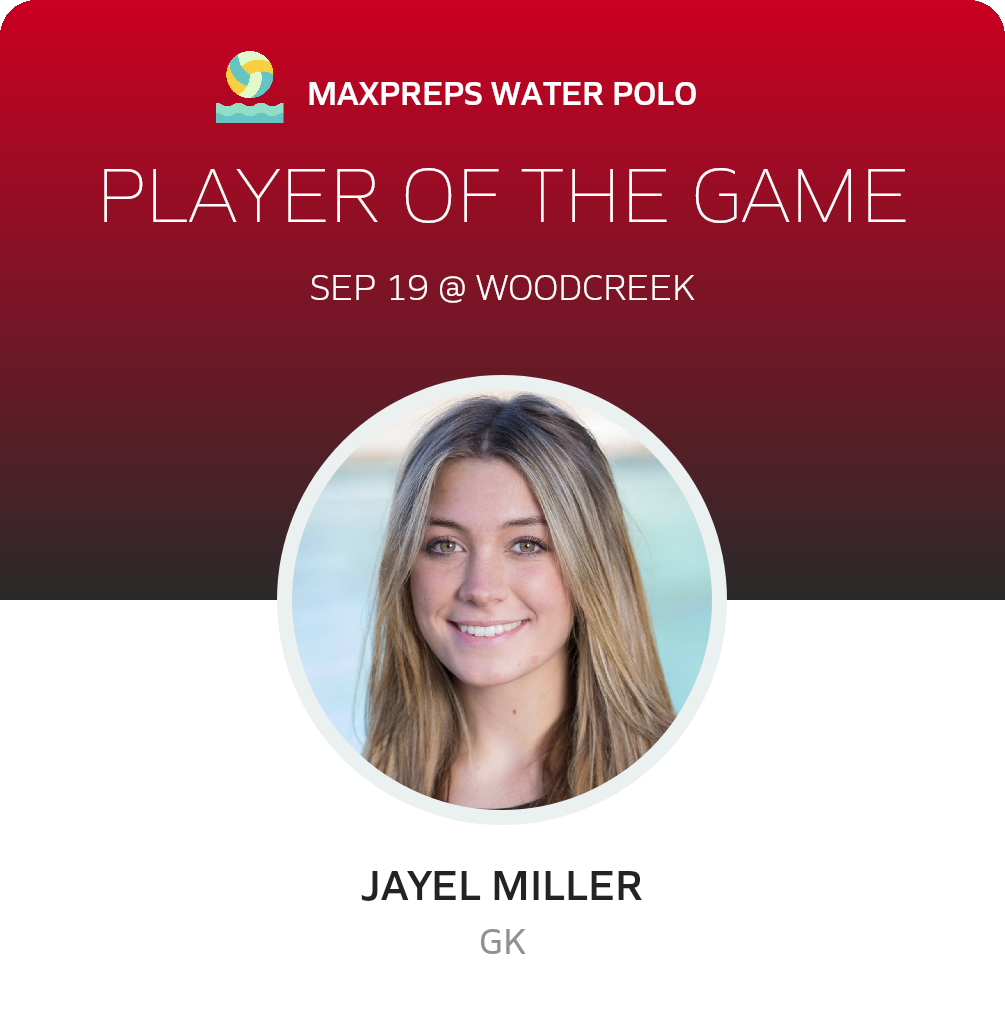 Congratulations to #17 Jayel Miller for being selected the St. Francis Girls JV Water Polo Player of the Game.
