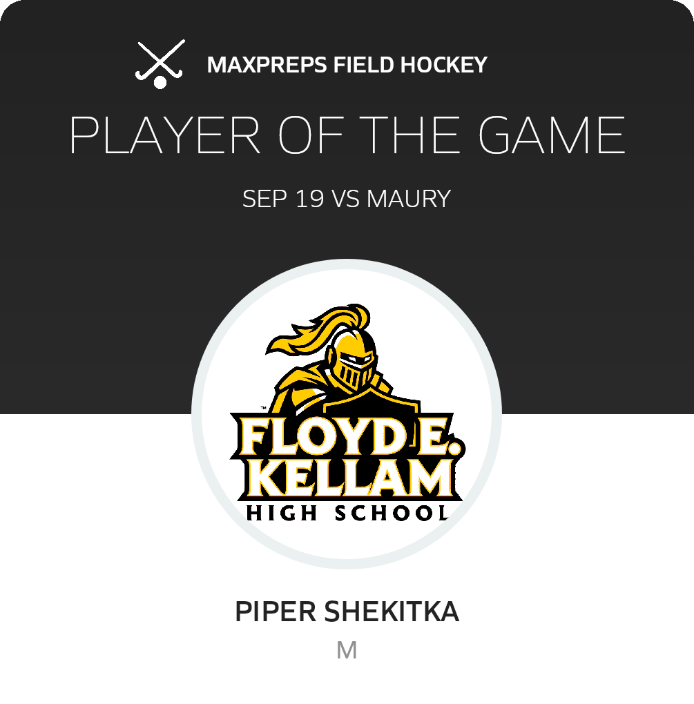 Congratulations to #15 Piper Shekitka for being selected the Kellam Field Hockey Player of the Game.