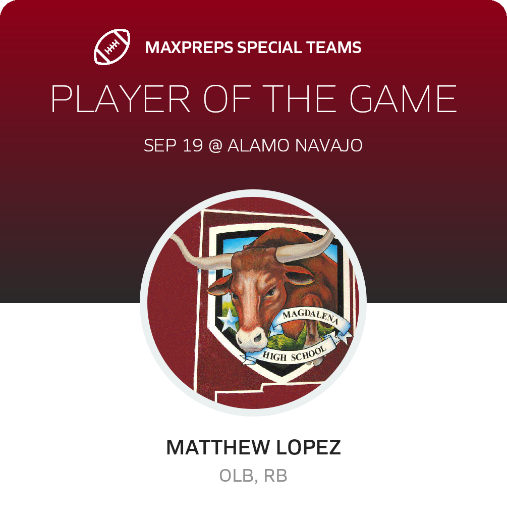 With the win, Magdalena advances its record to 3-1 on the campaign. The Steers travel to Reserve (Reserve, NM) to confront the Mountaineers in a non-league match on Thursday, September 25. The Mountaineers come into the match with a record of 0-2. Reserve lost 61-0 in their recent non-league match against Magdalena (Magdalena, NM)