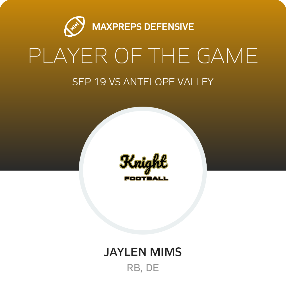 With the win, Knight improves its record to 2-2 on the season. The Hawks travel to Highland (Palmdale, CA) to play the Bulldogs in a Golden battle on Friday, September 26. The Bulldogs go into the battle with a record of 0-4. Highland lost 35-6 in their recent league match against Quartz Hill (Quartz Hill, CA)