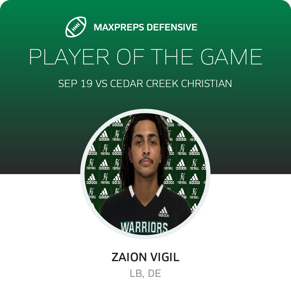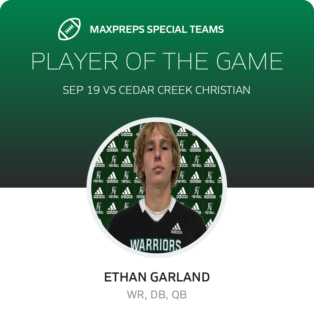 In their next game, the Warriors battle the Mt. Bethel Christian Academy Eagles (Marietta, GA) in a non-league game, on Friday, October 3. Eagle's View will attempt to better on its 4-2 season record. The Eagles enter the game with a 4-1 record after their 2-0 non-league win over Palm Beach Christian Prep (Greenacres, FL).